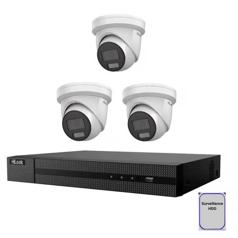 - 3 x HiLook – 8MP 2.8mm AI White Turret IP CCTV Camera with Built in Mic – HL-IPC-T381H-MU-0280: Enhance your surveillance with three HiLook Turret IP CCTV Cameras. Each camera, featuring a 6MP sensor and a 2.8mm lens, is capable of capturing wide-angle views in crystal clear resolution, and superior low light performance. The built-in dual microphones adds an audio dimension to your surveillance, picking up sounds to complement the high-quality video footage. The advanced AI capabilities ensure smart detection of movement, significantly reducing false alarms.
